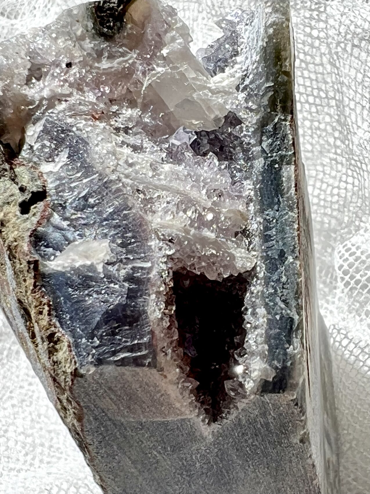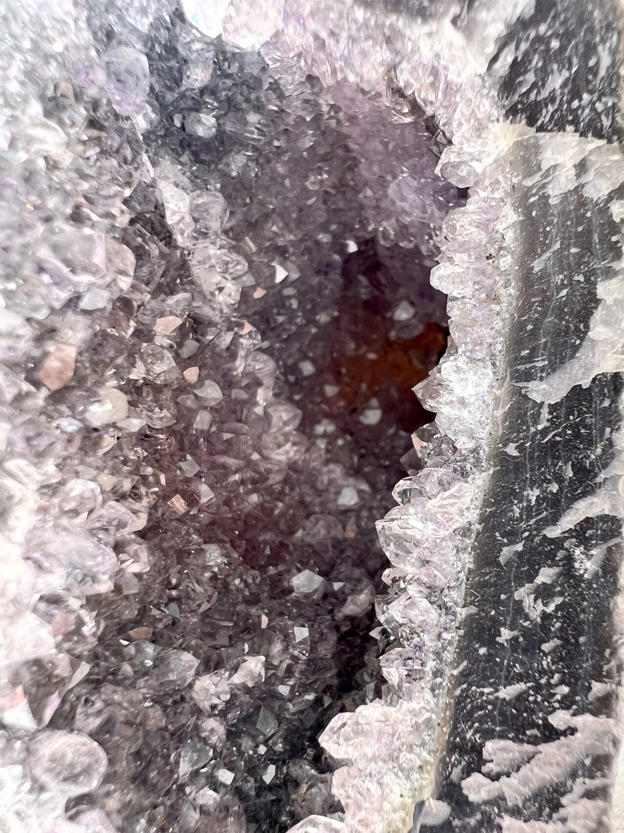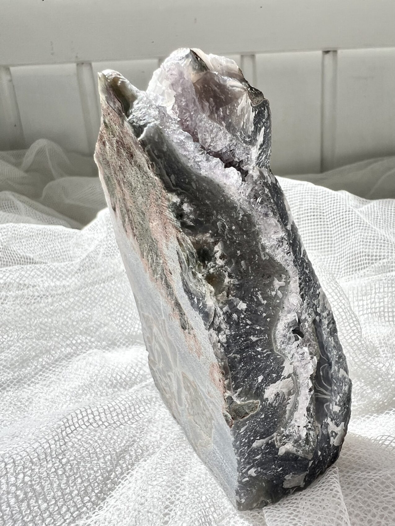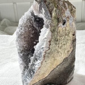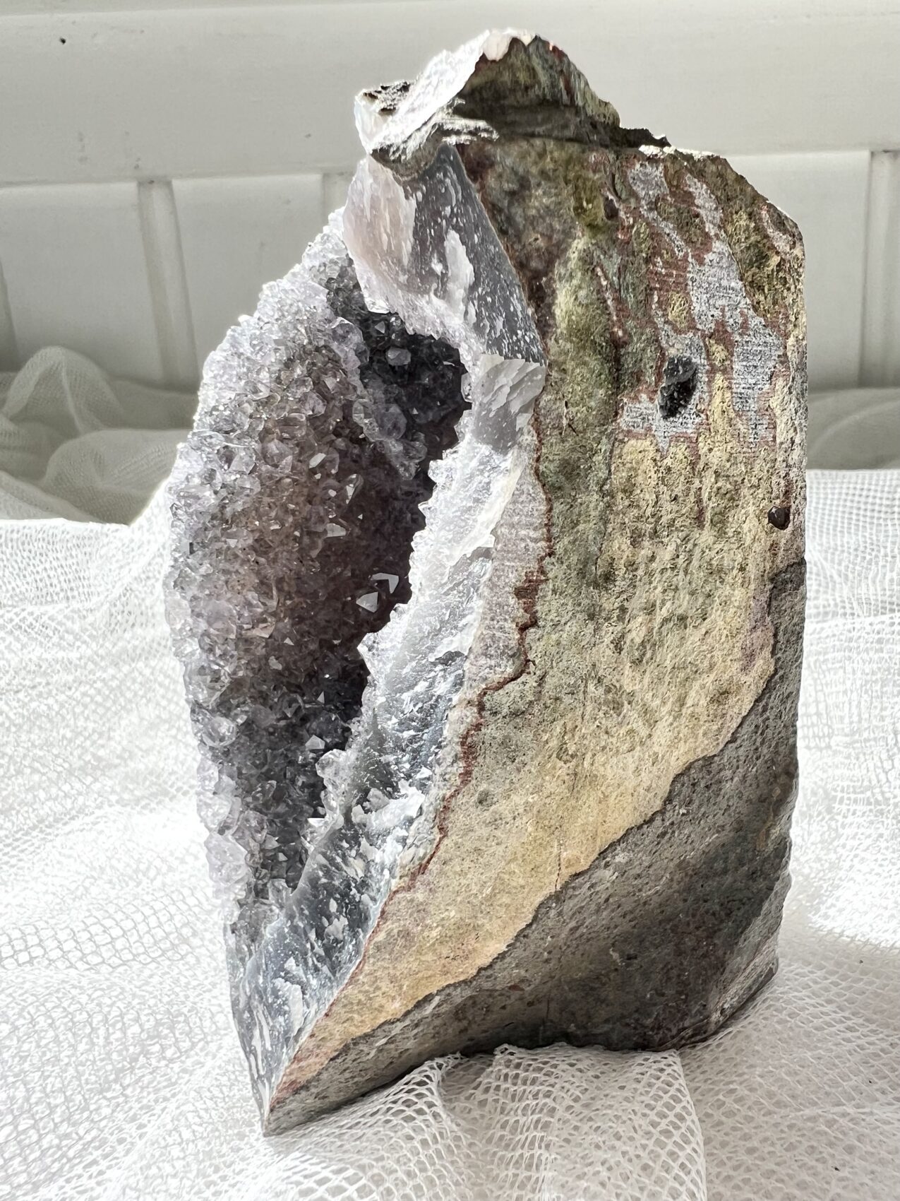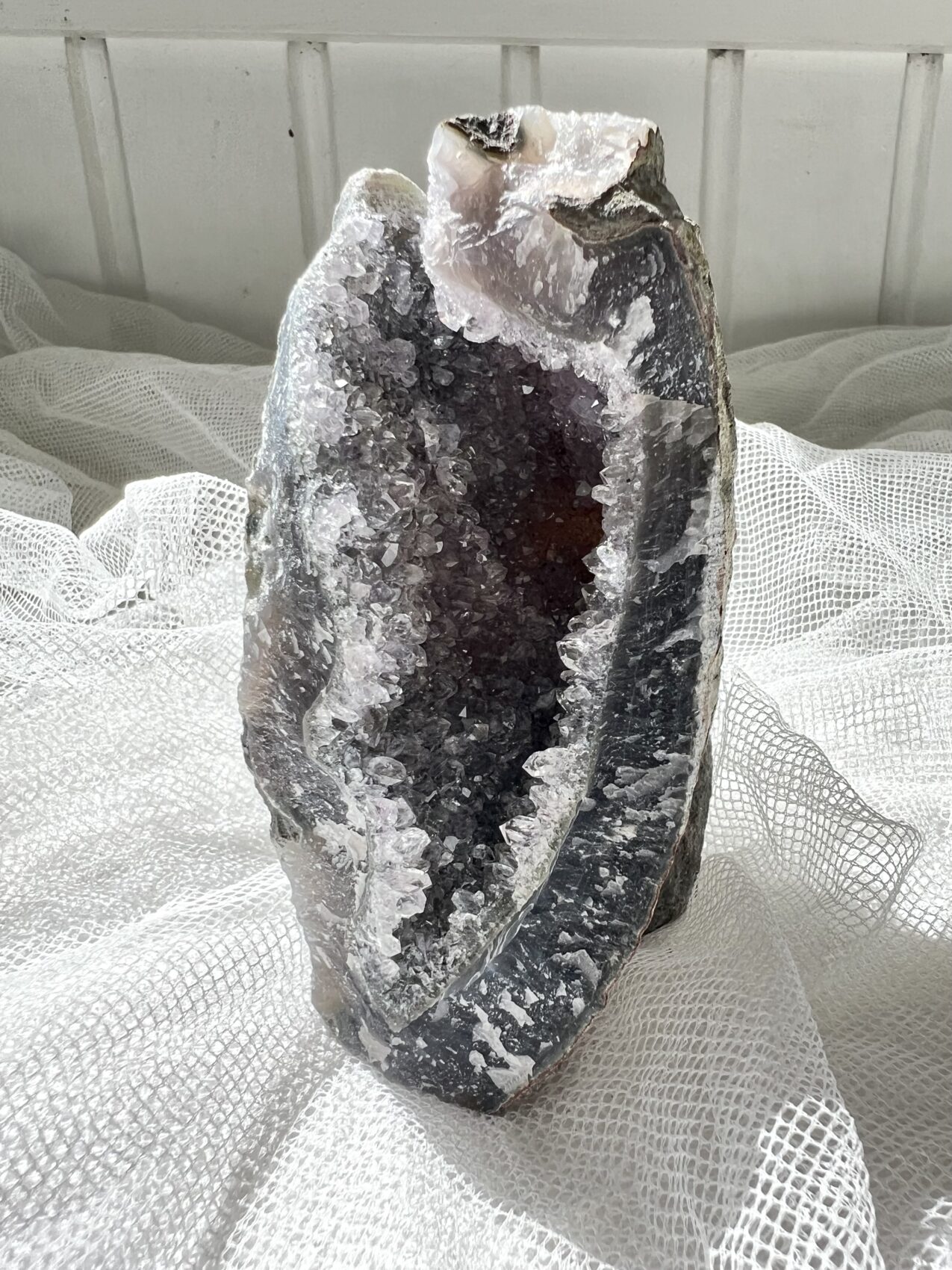 An unusual upright amethyst cluster, which is almost a complete geode, a natural form that allows the crystals to grow over thousands of years into the air or water filled cavity.