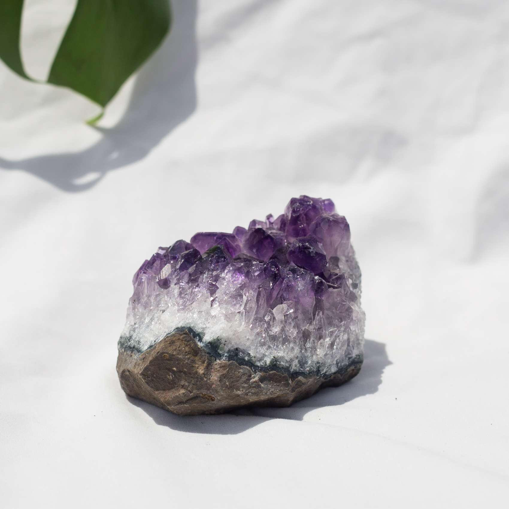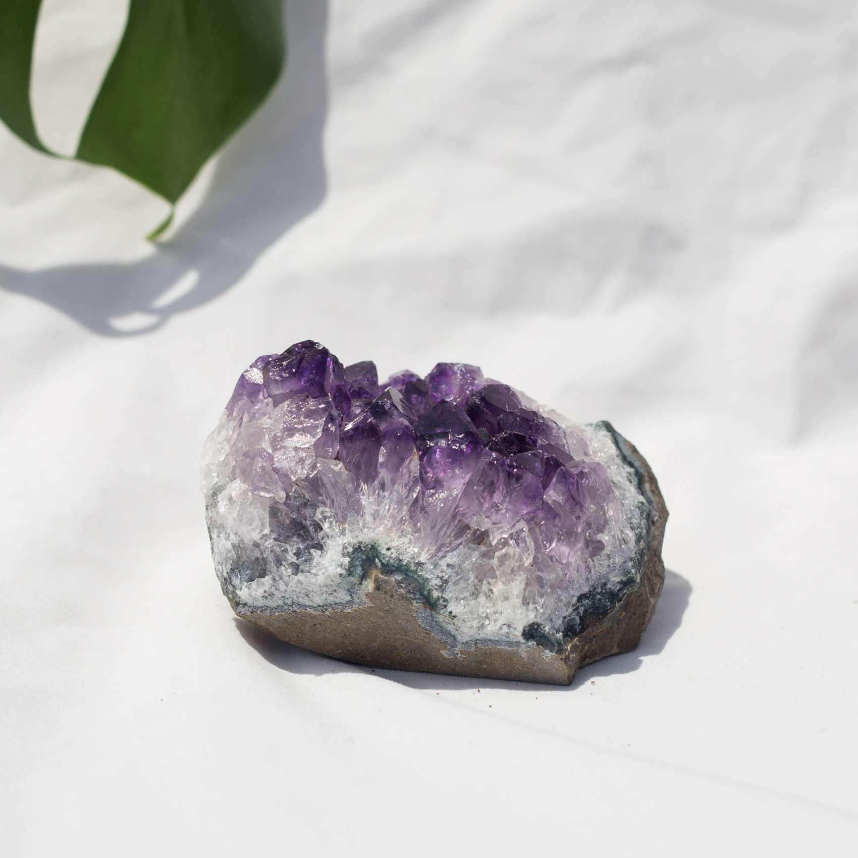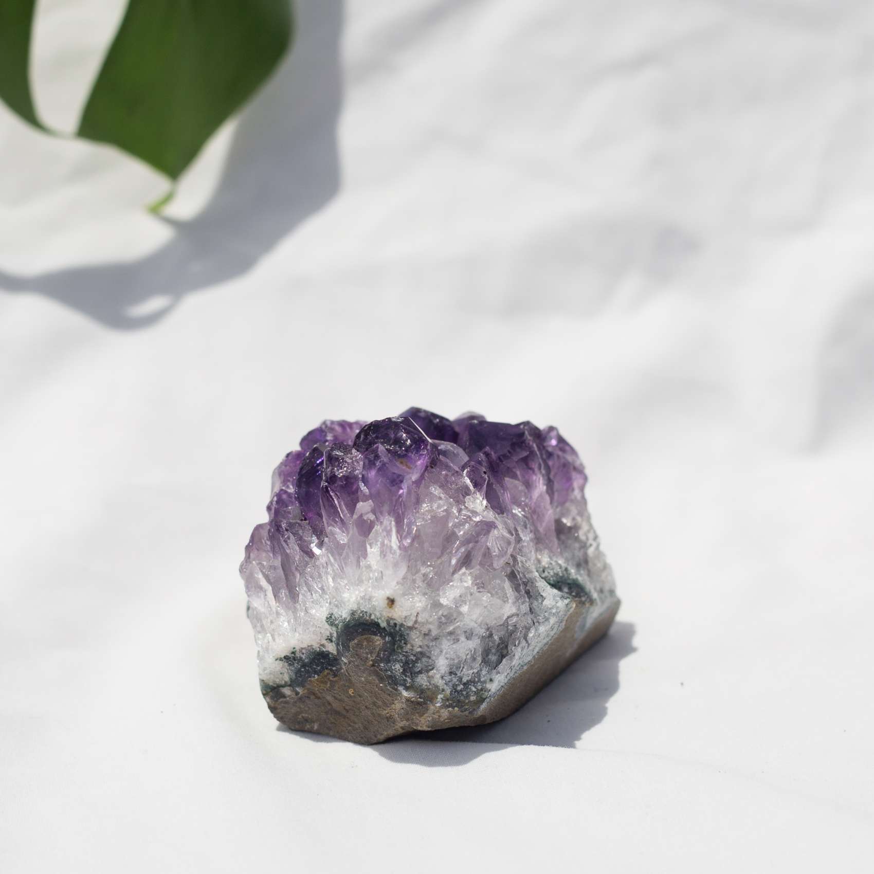 A flat bottomed amethyst cluster with a lovely depth and curve to the crystal points. With a flat side, this cluster displays two ways really beautifully.