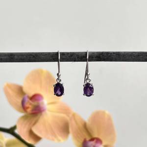 Oval amethyst earrings, with a beautiful rich colour and simple setting, these are an absolute classic.