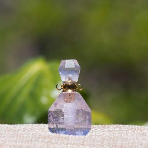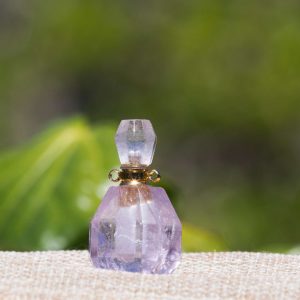 A delicate lilac amethyst crystal has been shaped into this exquisite perfume bottle to carry your favourite scent with you wherever you go.