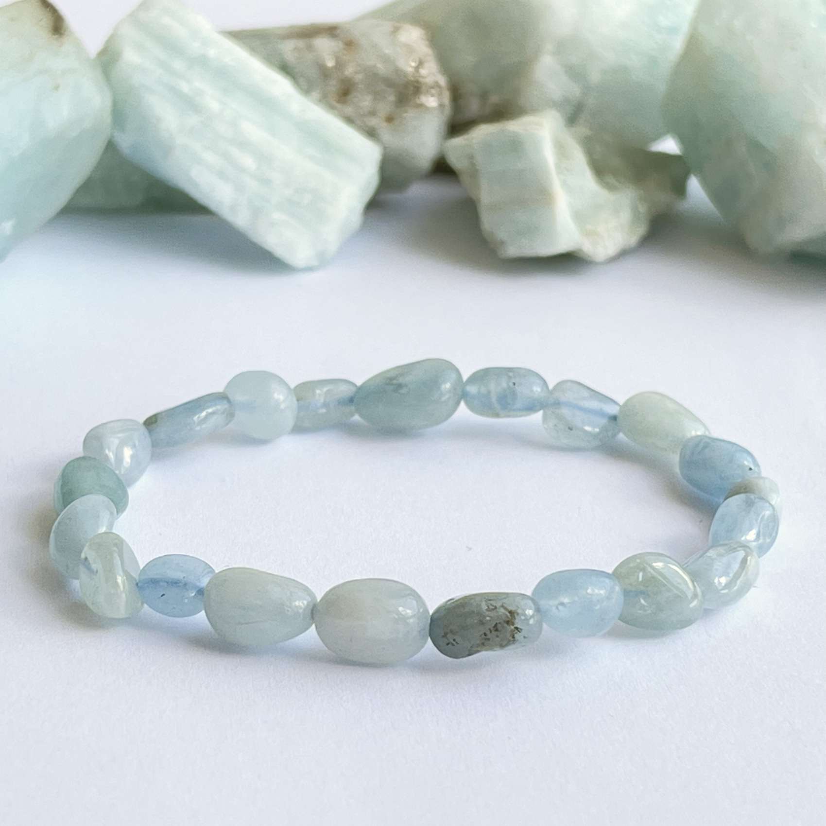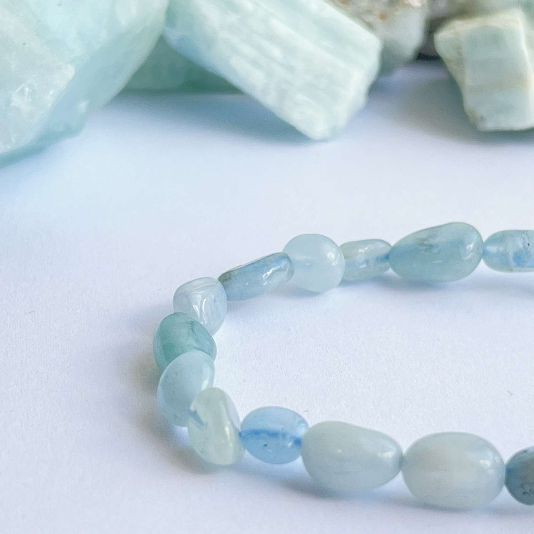 A simple bracelet of small freeform aquamarine beads, many with good clarity and a lovely pale blue colour.