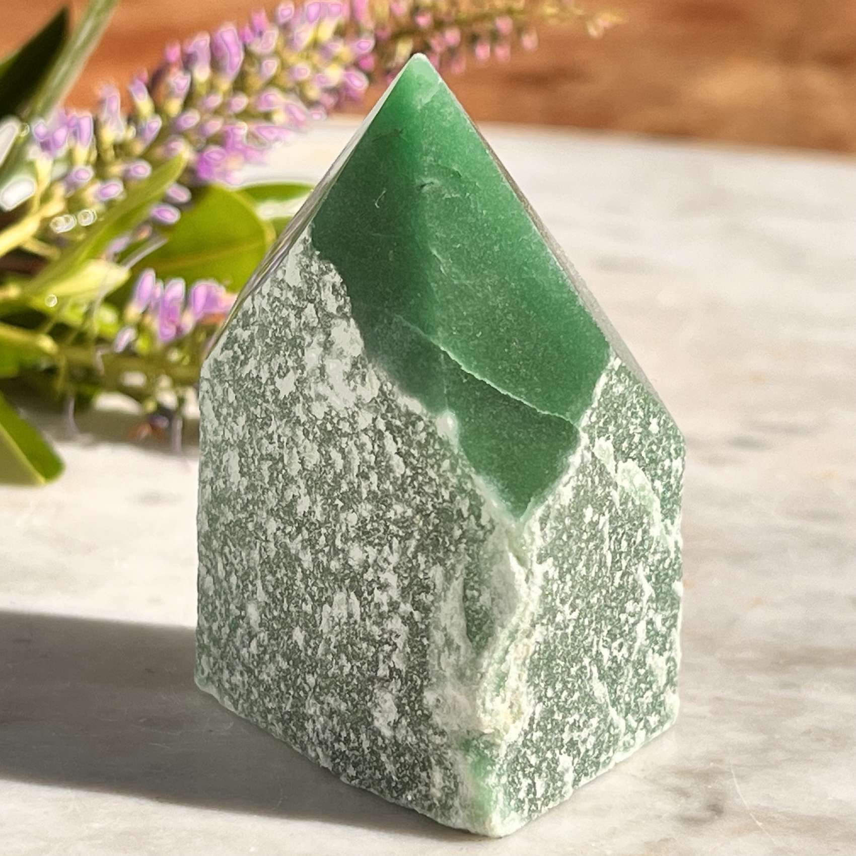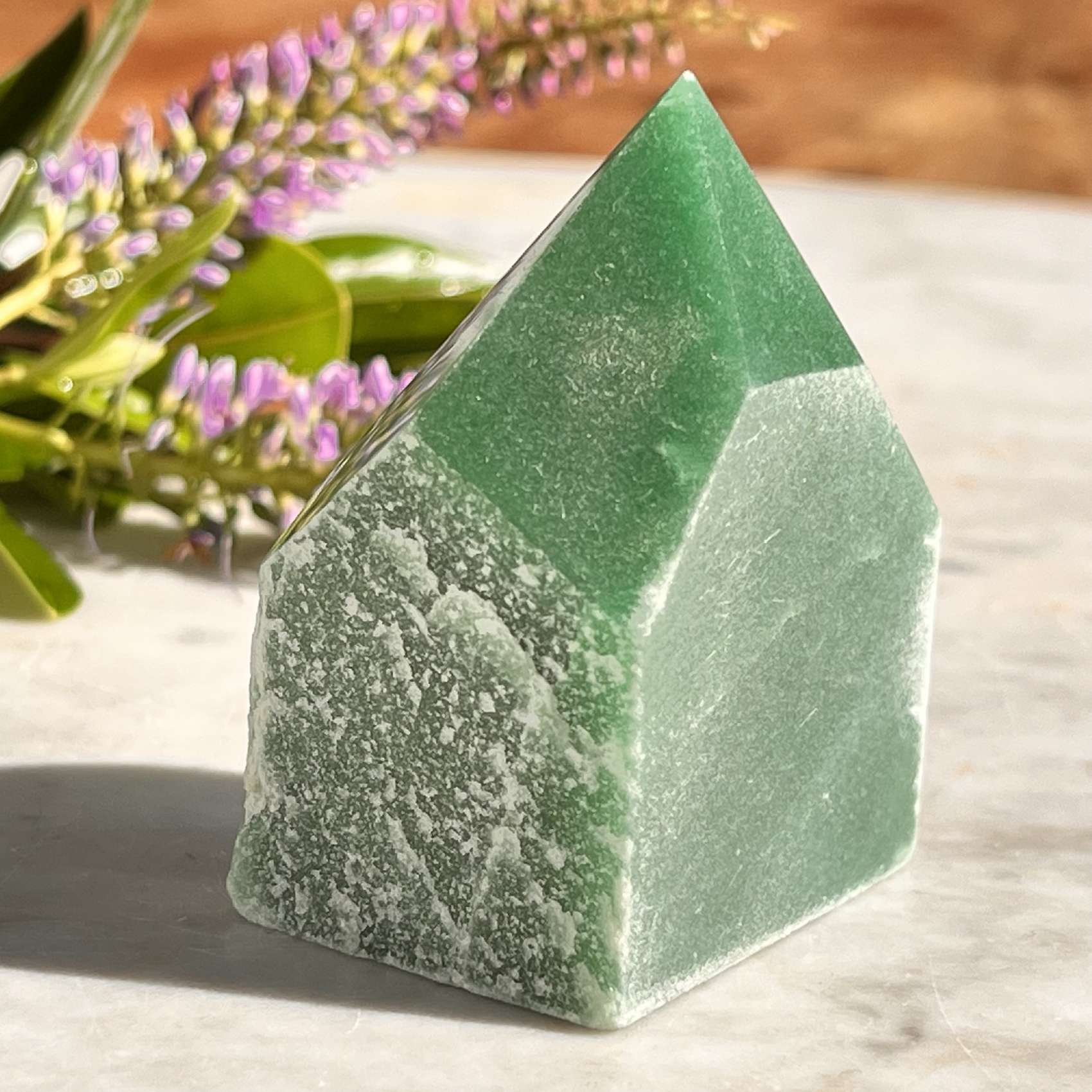 Activates, clears and protects the heart chakra (green form) and sacral chakra (orange form) from the intrusion of discord and negativity within the energy fields of others. Balances the masculine and feminine energies within us, boosts a sense of adventure to try new things, overcome shyness and brings out our leadership qualities. Supports balance between our intellect, emotions and auric fields, encouraging good instincts when decision making. A healer of our wounded child within, aventurine frees us to explore our unlimited potential.