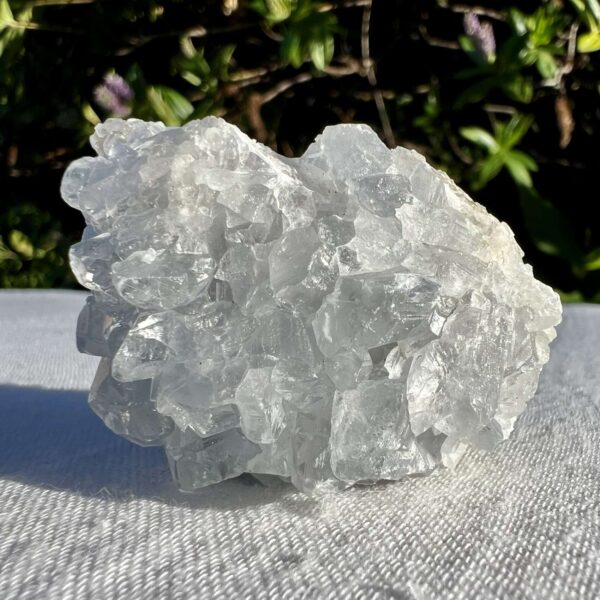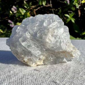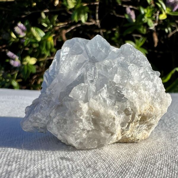 Celestine, also known as celestite is a ‘soft’ and often crumbly crystal which should be handled gently.