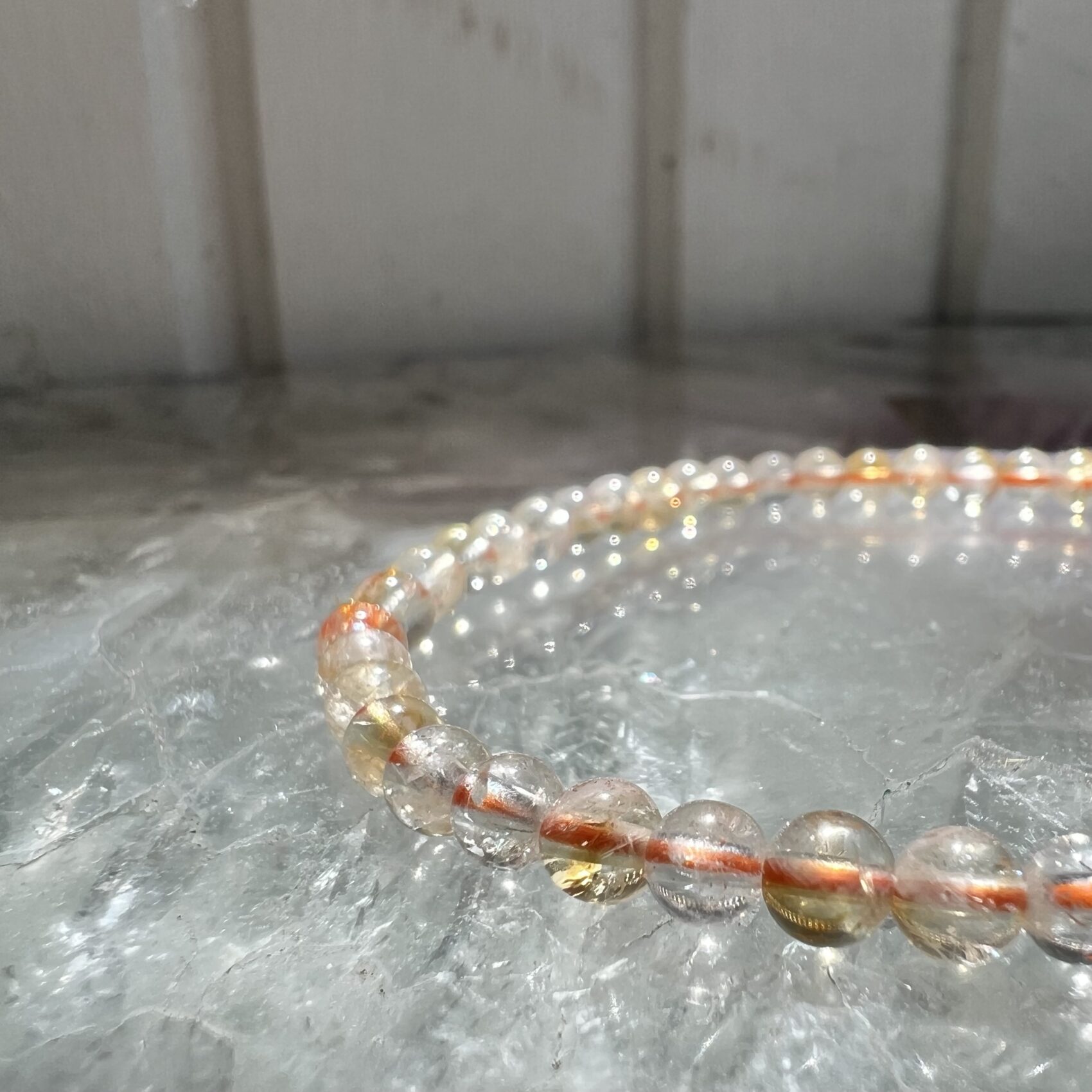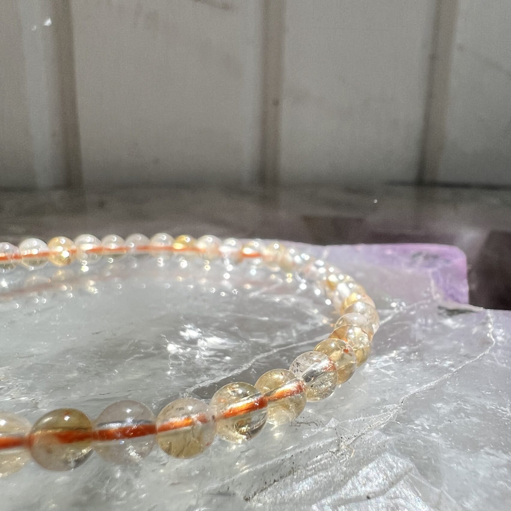A simple, beautiful citrine bracelet made with 4mm round beads on an orange elastic. Easy to wear crystal jewellery, a great way to keep this much loved crystal with you when you need to feel a little more confident.