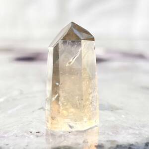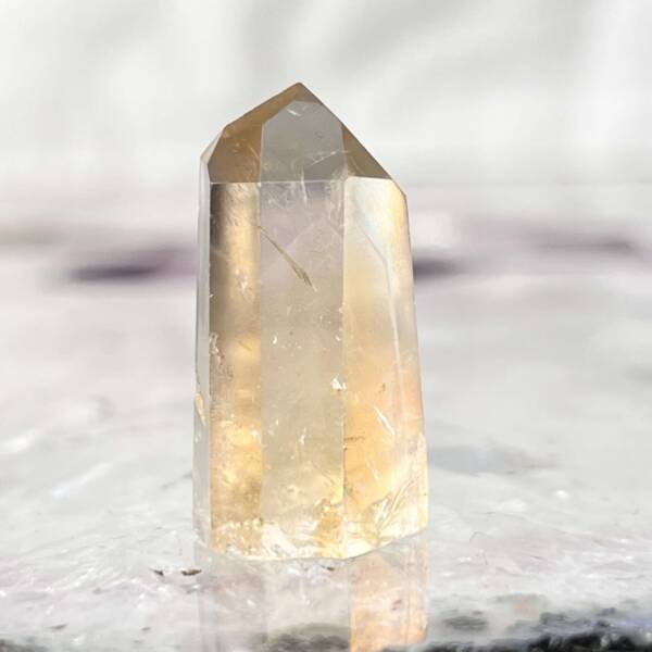 A natural citrine tower which has super clarity, and has been simply cut and polished with varying sizes to the six sides and facets, revealing a glorious golden hue.