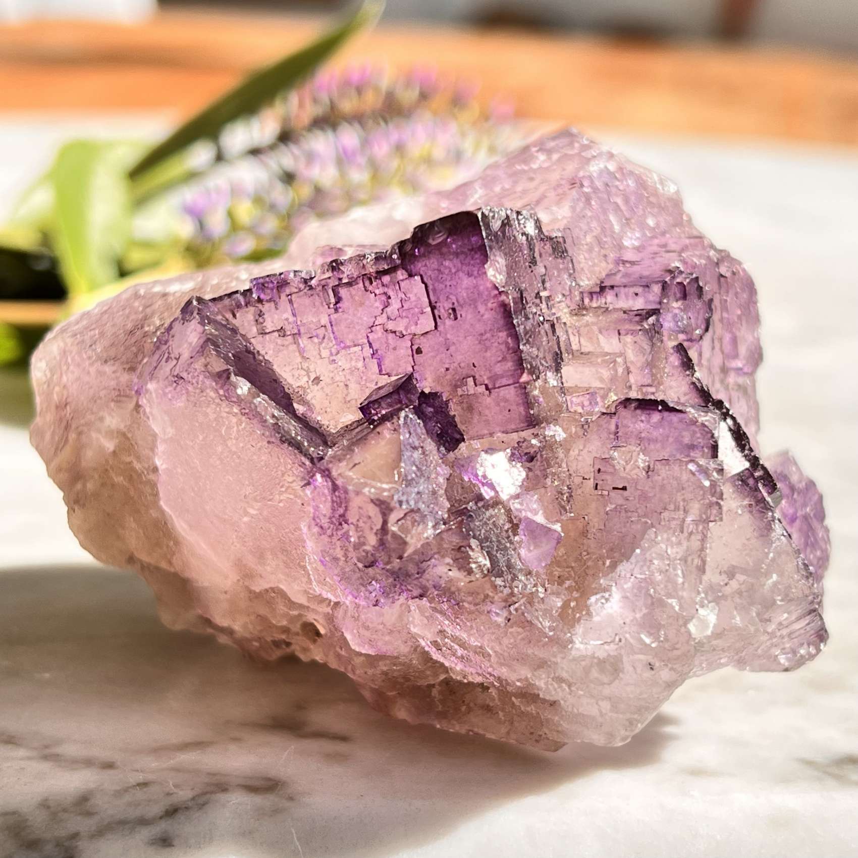 This mineral brings order to chaos, stabilising disruptive and disorganised behaviour, whether mental, physical or emotional. Fluorite increases mental focus, concentration and intuition, strengthening the link between mind and universal energy, clearing confusion and auras. Stimulates and supports the creation of plans, method and structure.