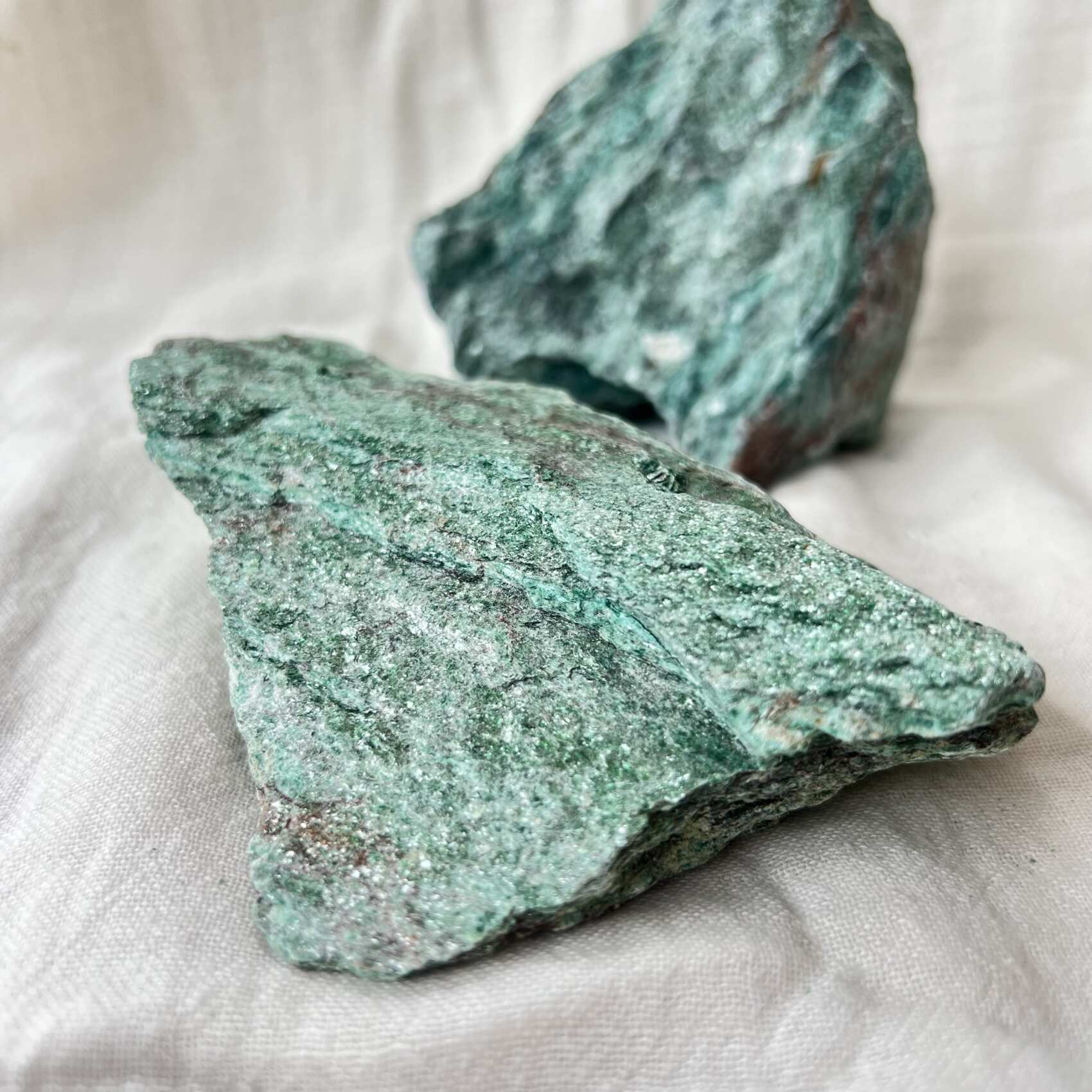 Natural fuchsite, with all the sparkle and distinctive pattern that gives this mineral such a presence.