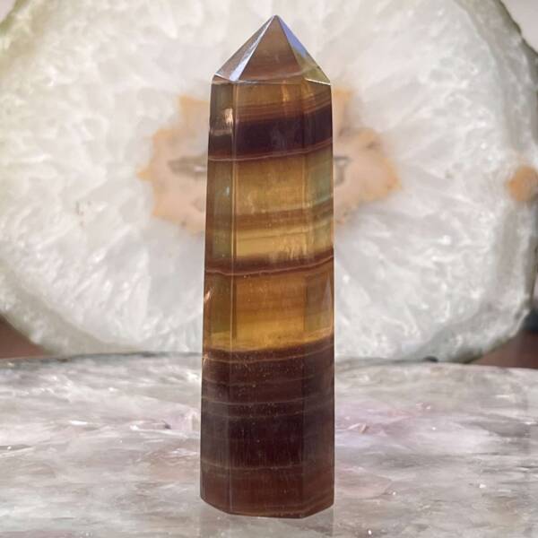 This mineral brings order to chaos, stabilising disruptive and disorganised behaviour, whether mental, physical or emotional. Fluorite increases mental focus, concentration and intuition, strengthening the link between mind and universal energy, clearing confusion and auras. Stimulates and supports the creation of plans, method and structure.