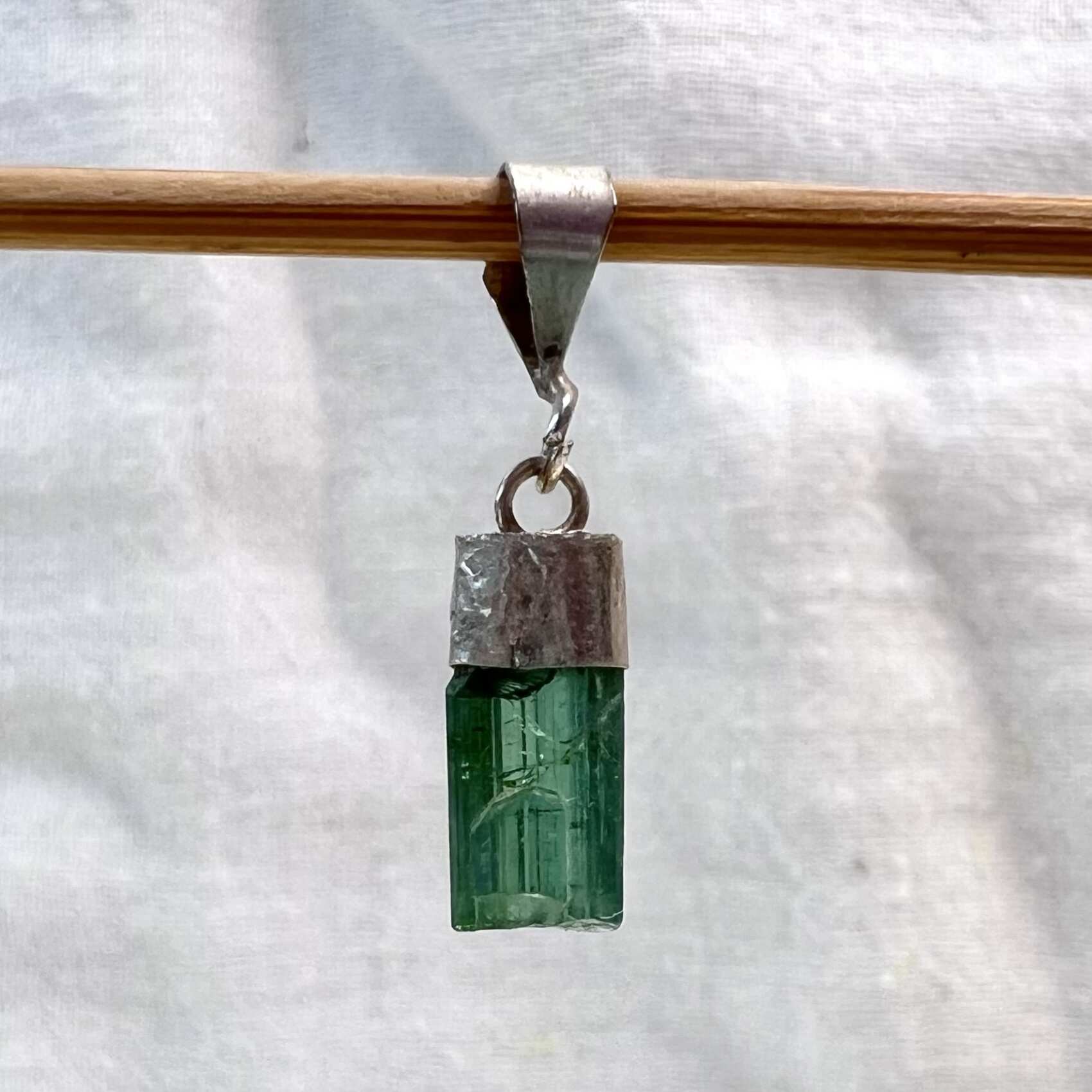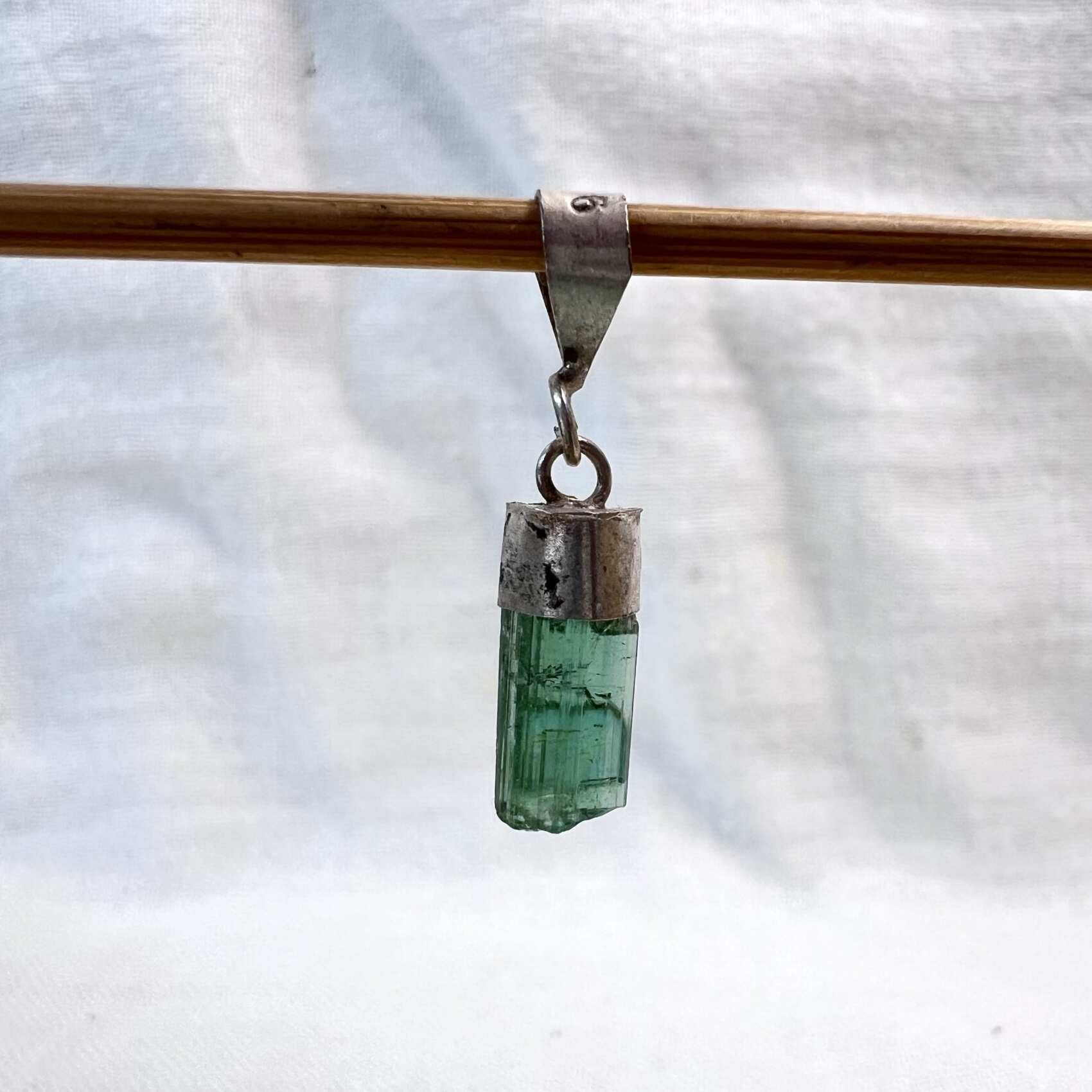 A translucent green tourmaline pendant simply set in 925 silver to show case the beauty of this natural gem.