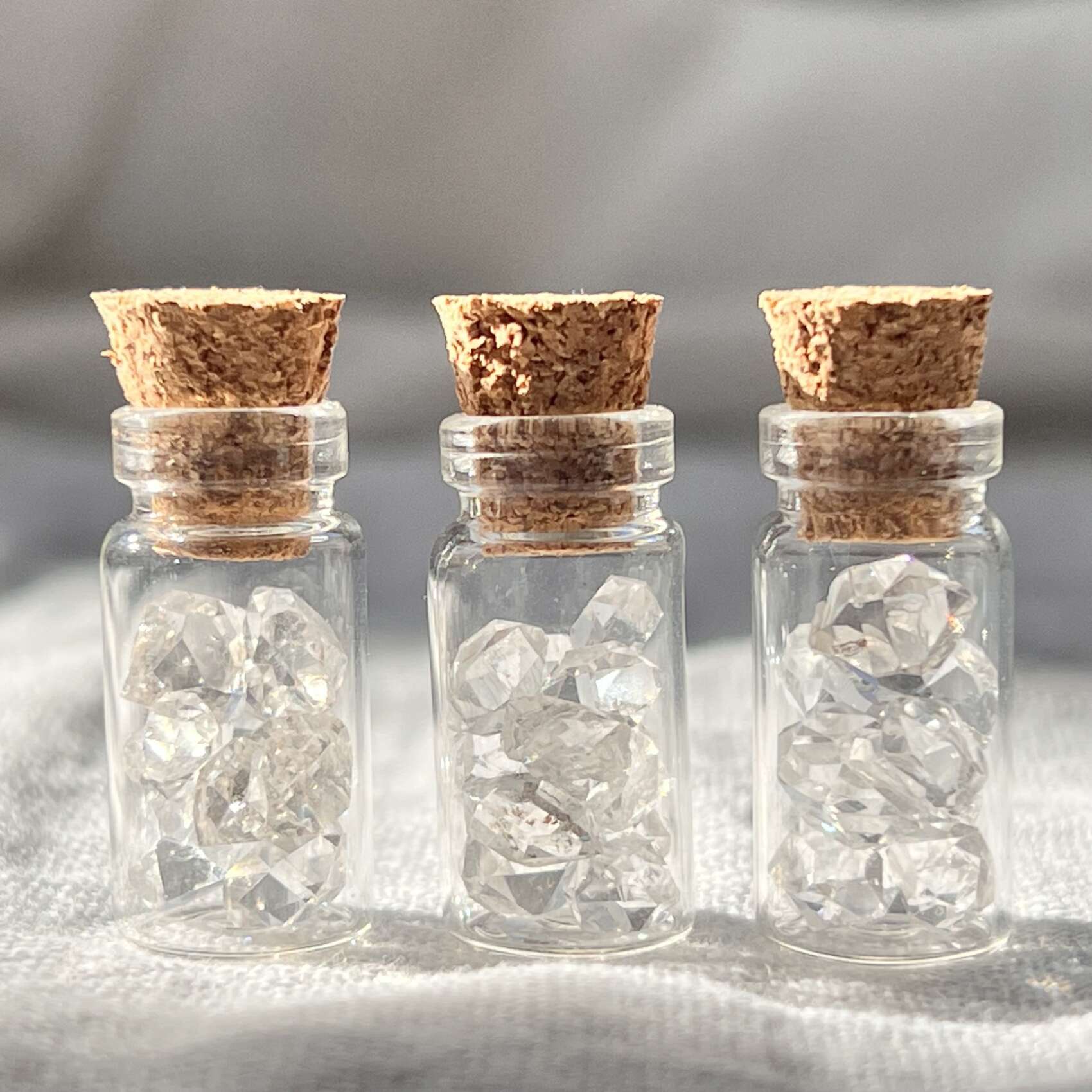 Each bottle contains ten herkimer diamonds of mixed sizes.