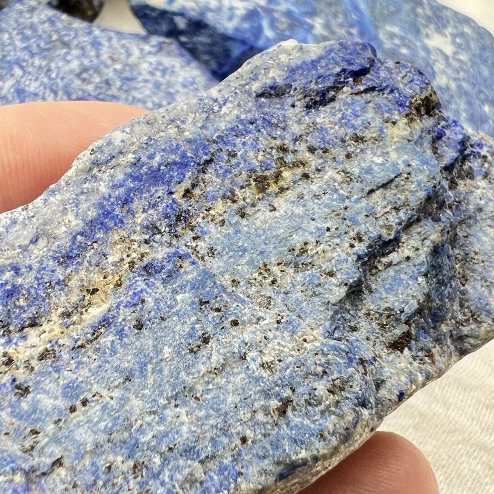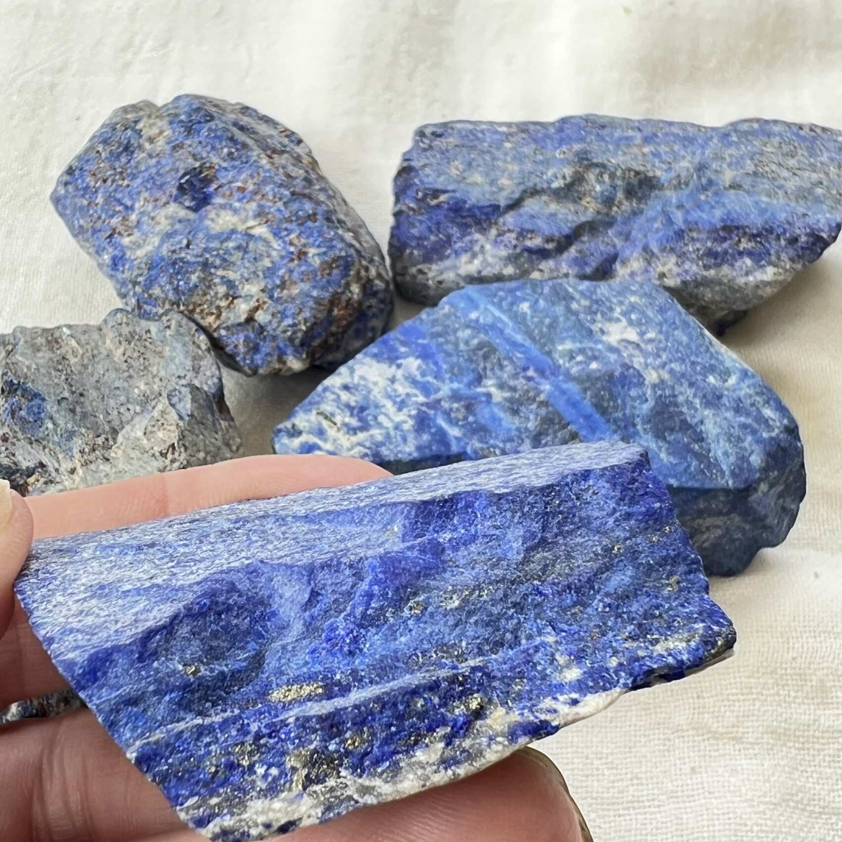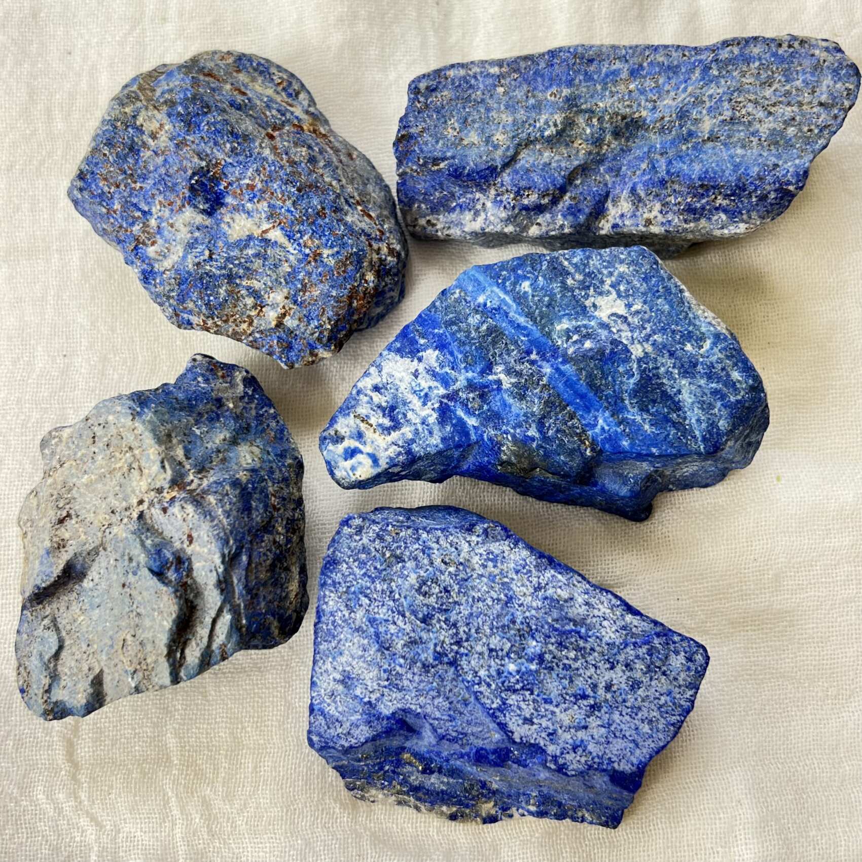Natural lapis lazuli with plenty of iron pyrite and rich deep blue lazurite. Lovely natural specimens for carving or to keep as is.