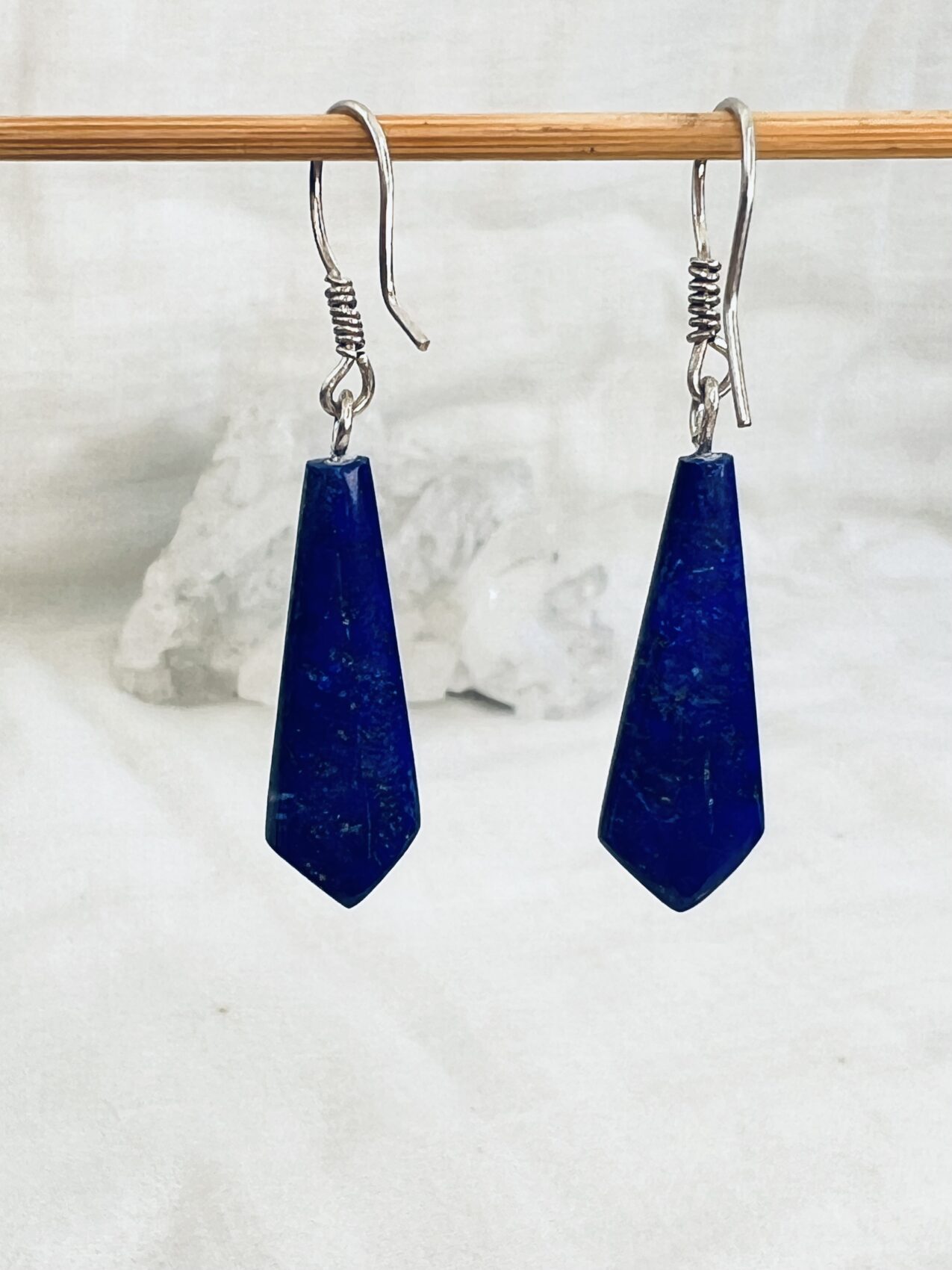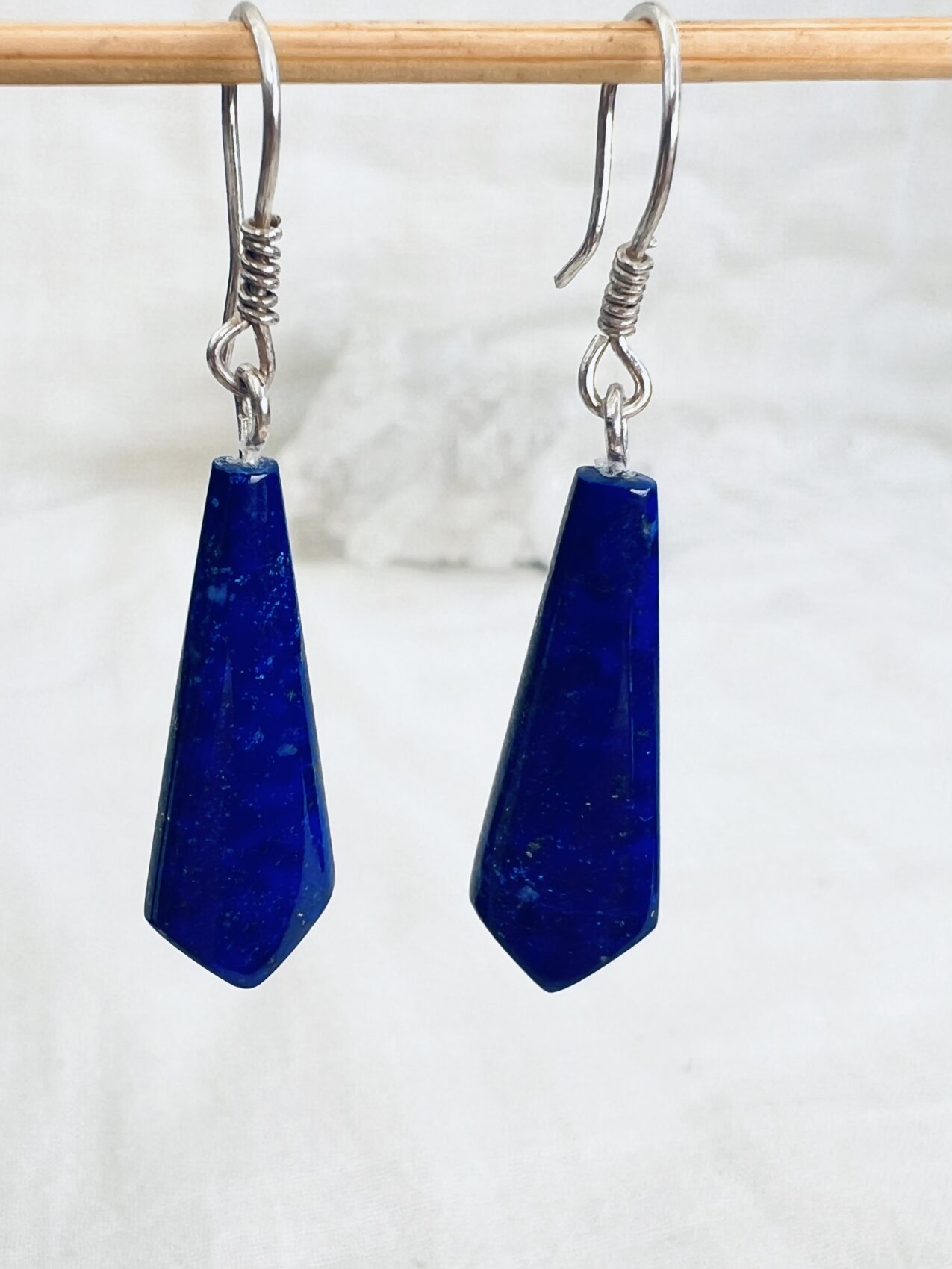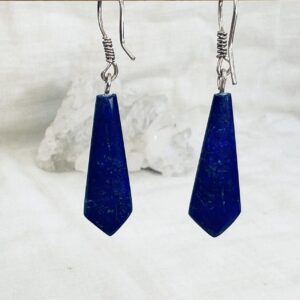 Beautiful lapis lazuli earrings, perfect for day and evening wear, hand cut and polished with silver hooks.