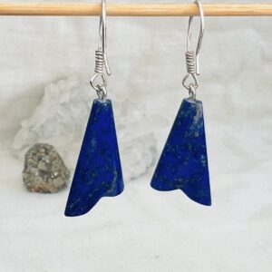 Beautiful lapis lazuli earrings, perfect for day and evening wear, hand cut and polished with silver hooks.