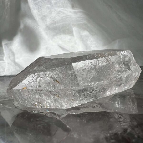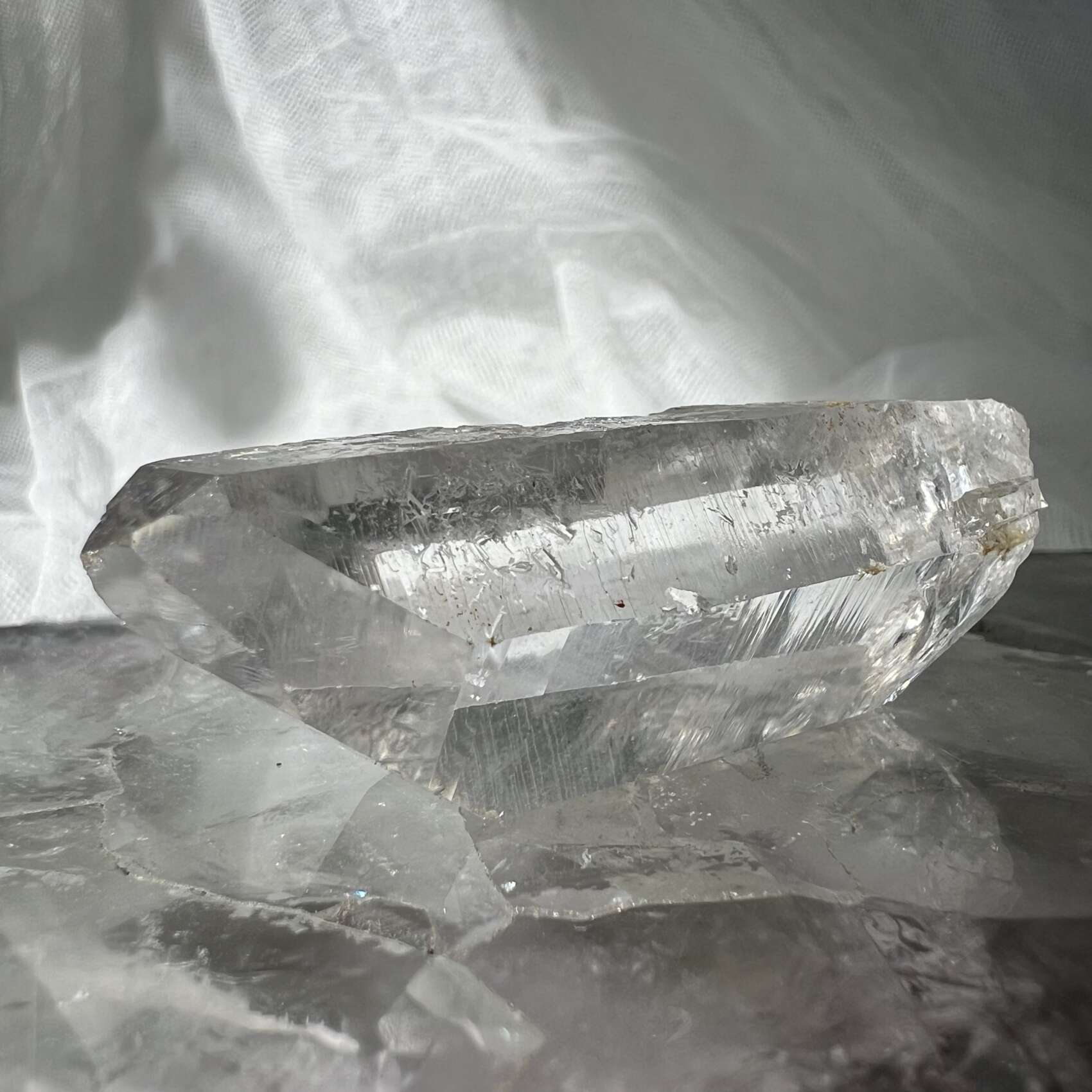 Distinctive, striated clear quartz thought to be programmed by an ancient, highly evolved people, the Lemurians, with their vast spiritual and technlogical knowledge, buried prior to the destruction of their island kingdom by flood.