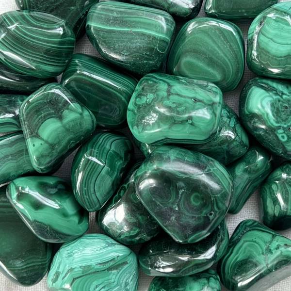 Natural malachite, tumble polished to reveal the distinctive colour and pattern that make this mineral so popular.