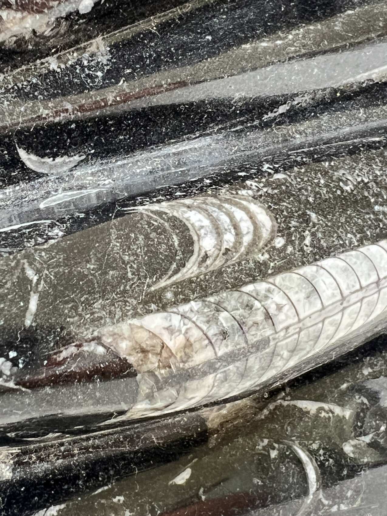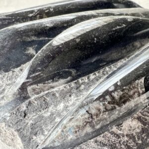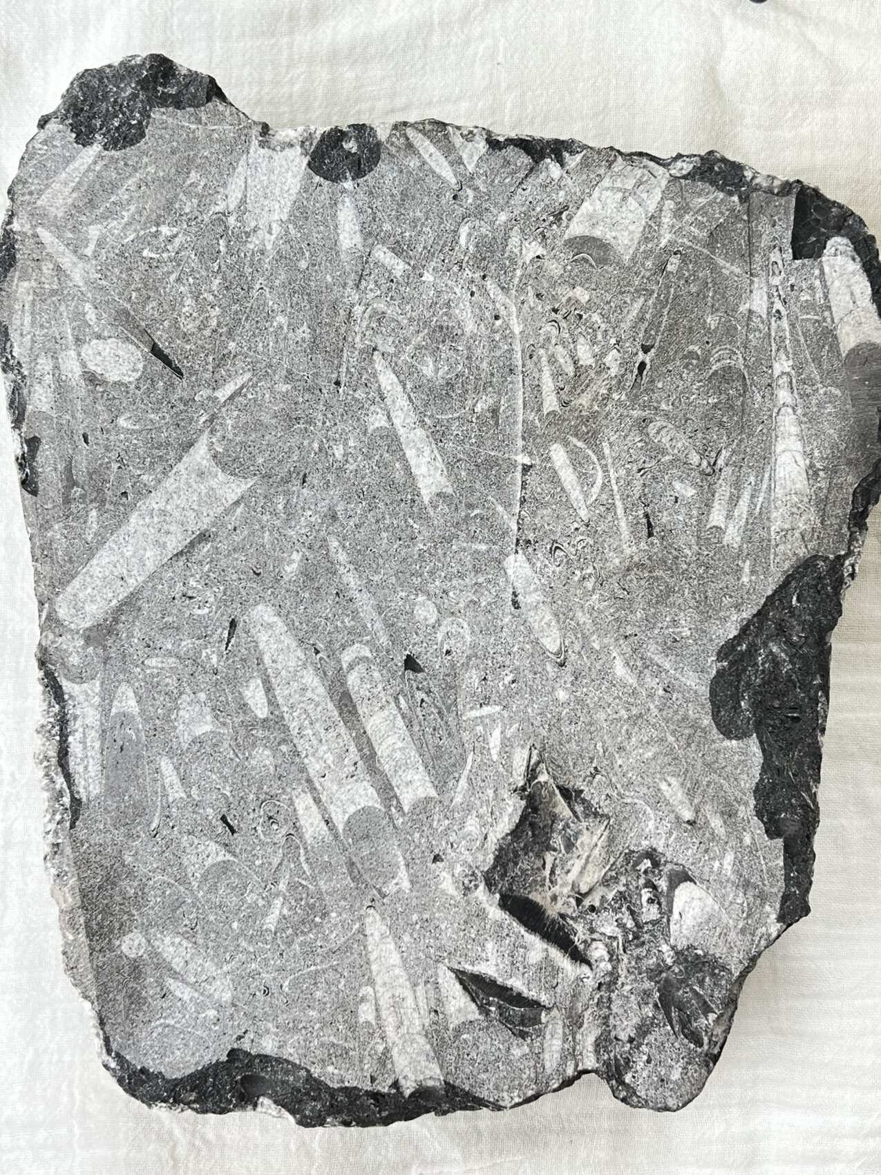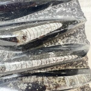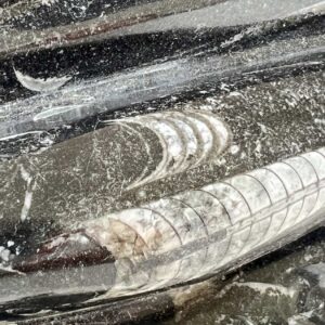 These ‘straight horn’ fossils are a slender, conical shaped extinct form of cephalopod which is thought to have lived in all the worlds oceans. The Greek word cephalopod literally means ‘head foot’ which is a reference to their ‘arms’ or tentacles formed on the head.