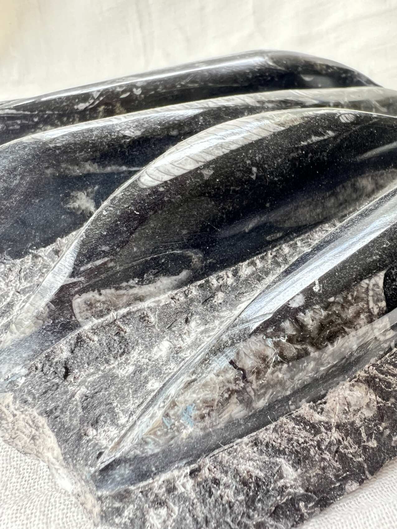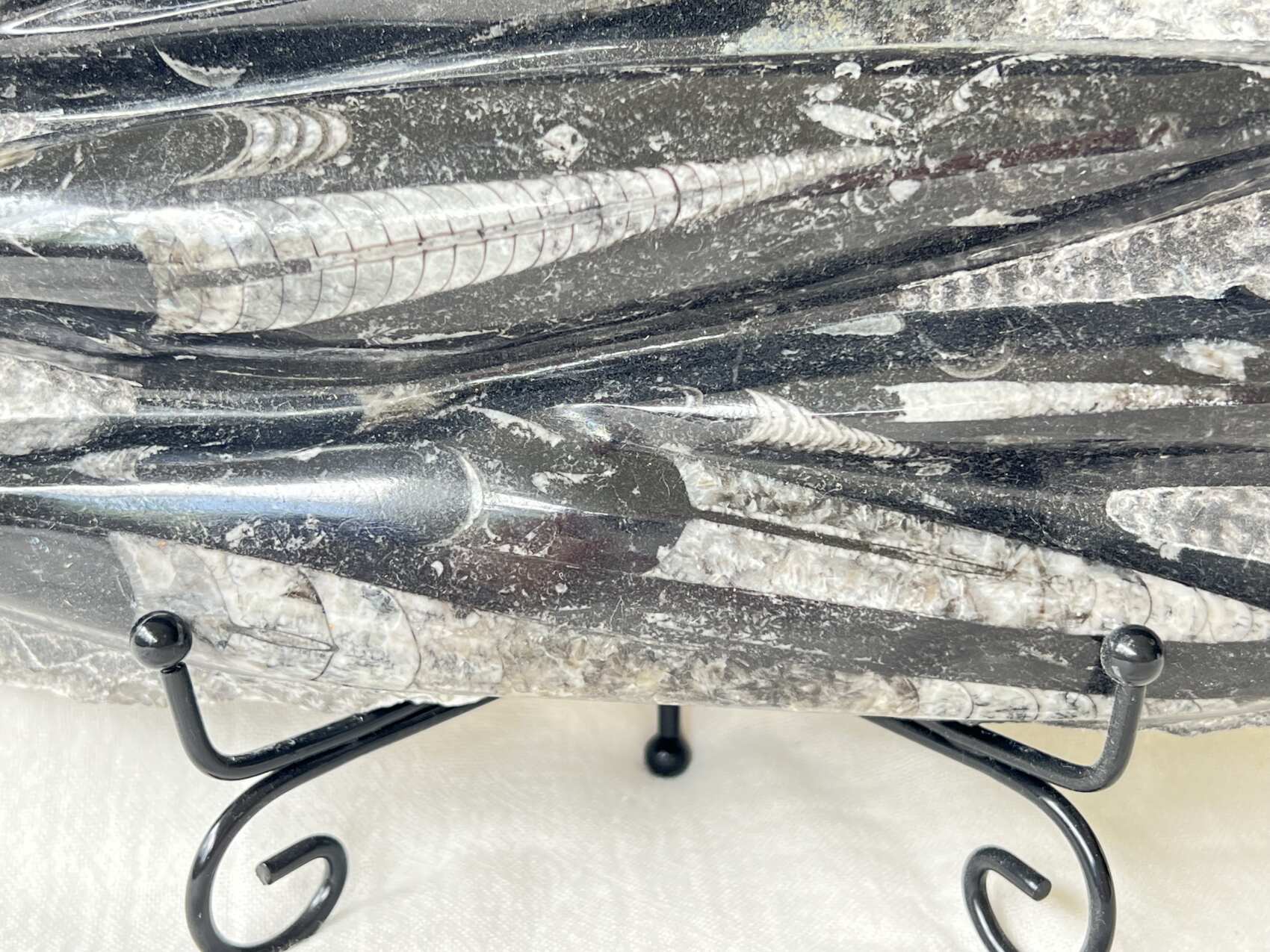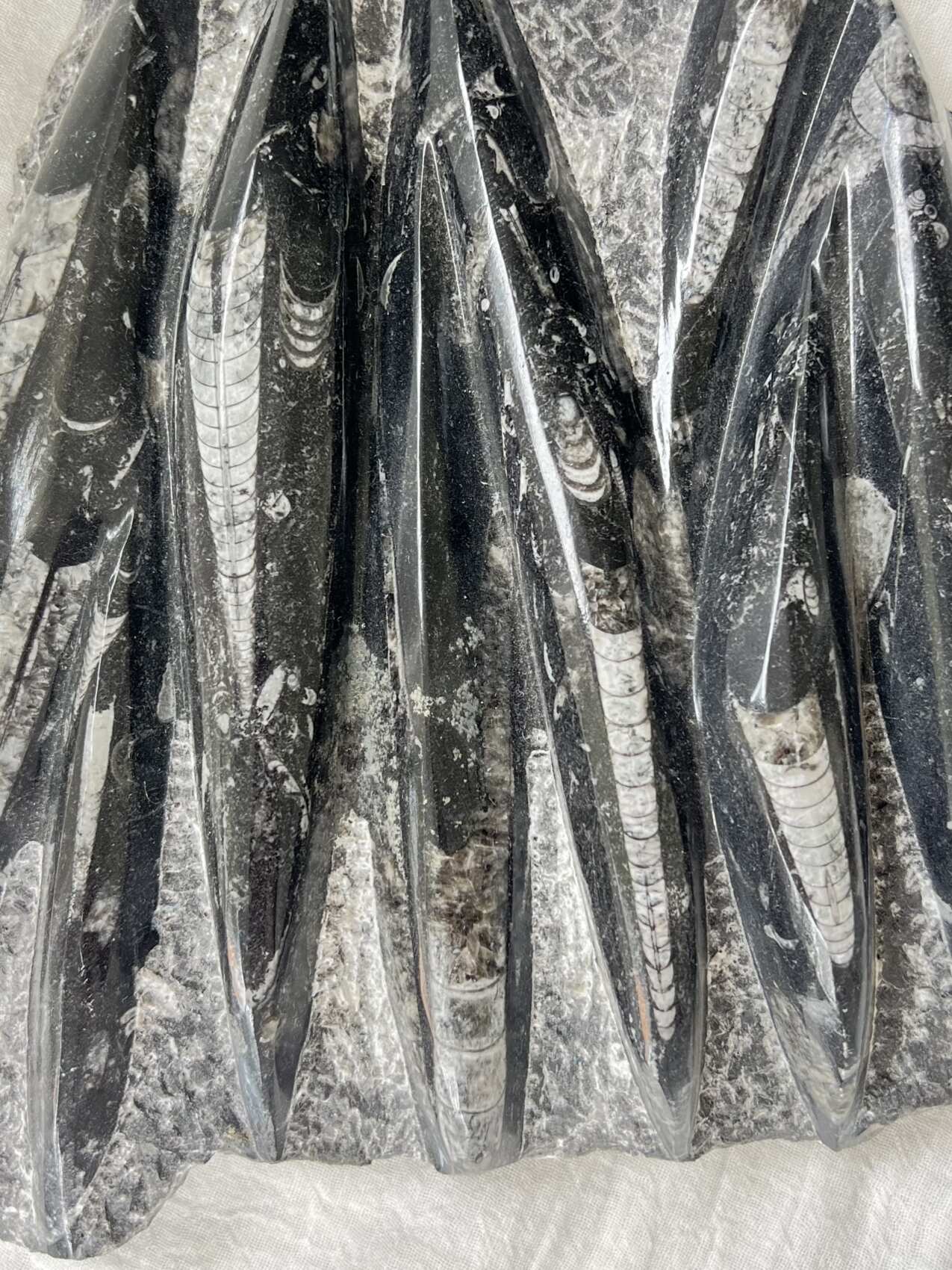 These ‘straight horn’ fossils are a slender, conical shaped extinct form of cephalopod which is thought to have lived in all the worlds oceans. The Greek word cephalopod literally means ‘head foot’ which is a reference to their ‘arms’ or tentacles formed on the head.