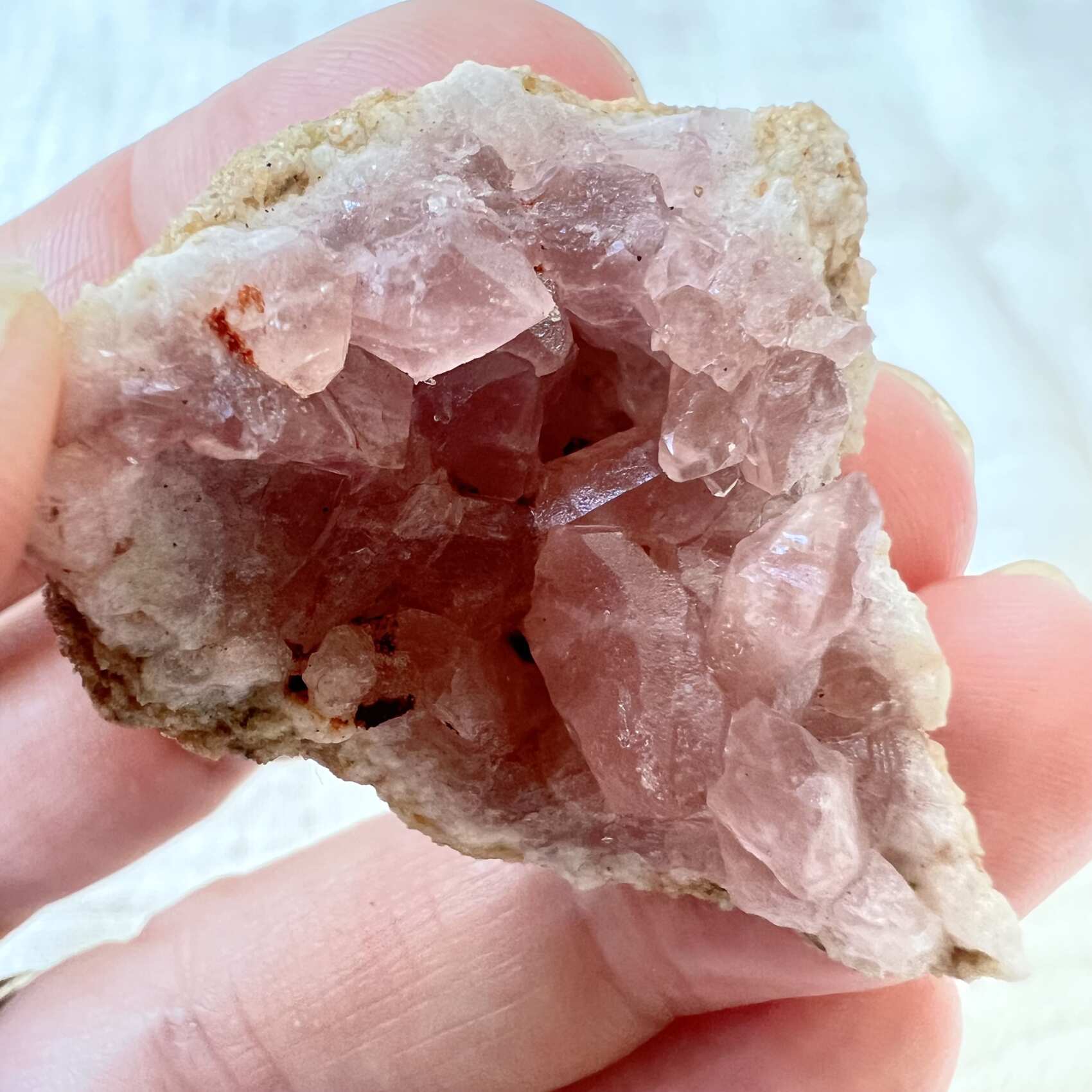 A natural growth form of amethyst with hematite rather than the usual manganese.