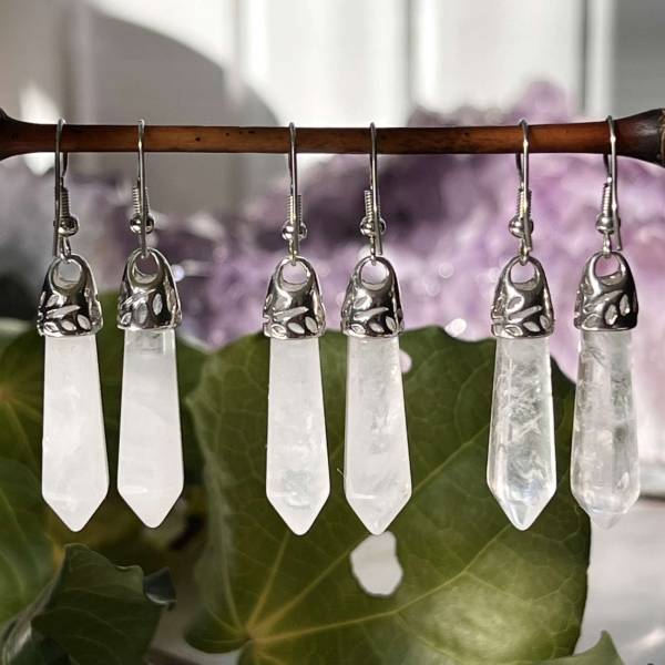 A lovely simple drop earring of clear quartz with great clarity and enough internal facets to add reflections and pattern. A classic earring to wear with anything, anytime.