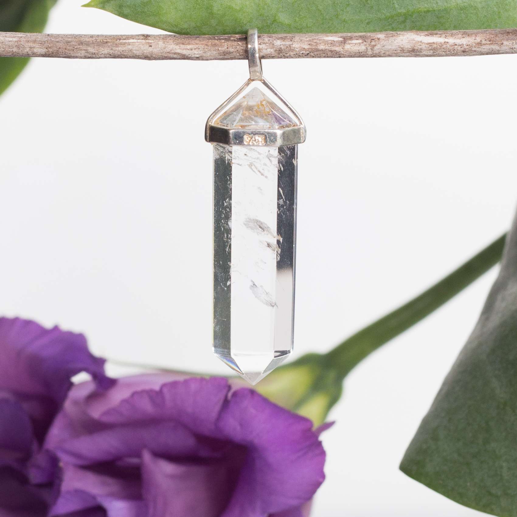 A six sided double terminated pendant set in solid 925 silver.