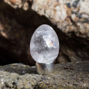 Yoni eggs are a polished pure crystal egg with a hole drilled through the small end for a cord to help with removal, although they can also be simply pushed out from a squatting position, if you don’t wish to use the string. Mine come with a simple waxed cotton cord. Wash them throughly before and after use in warm mild soapy water with a little tea tree oil if you have some to hand.