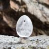 Yoni eggs are a polished pure crystal egg with a hole drilled through the small end for a cord to help with removal, although they can also be simply pushed out from a squatting position, if you don’t wish to use the string. Mine come with a simple waxed cotton cord. Wash them throughly before and after use in warm mild soapy water with a little tea tree oil if you have some to hand.