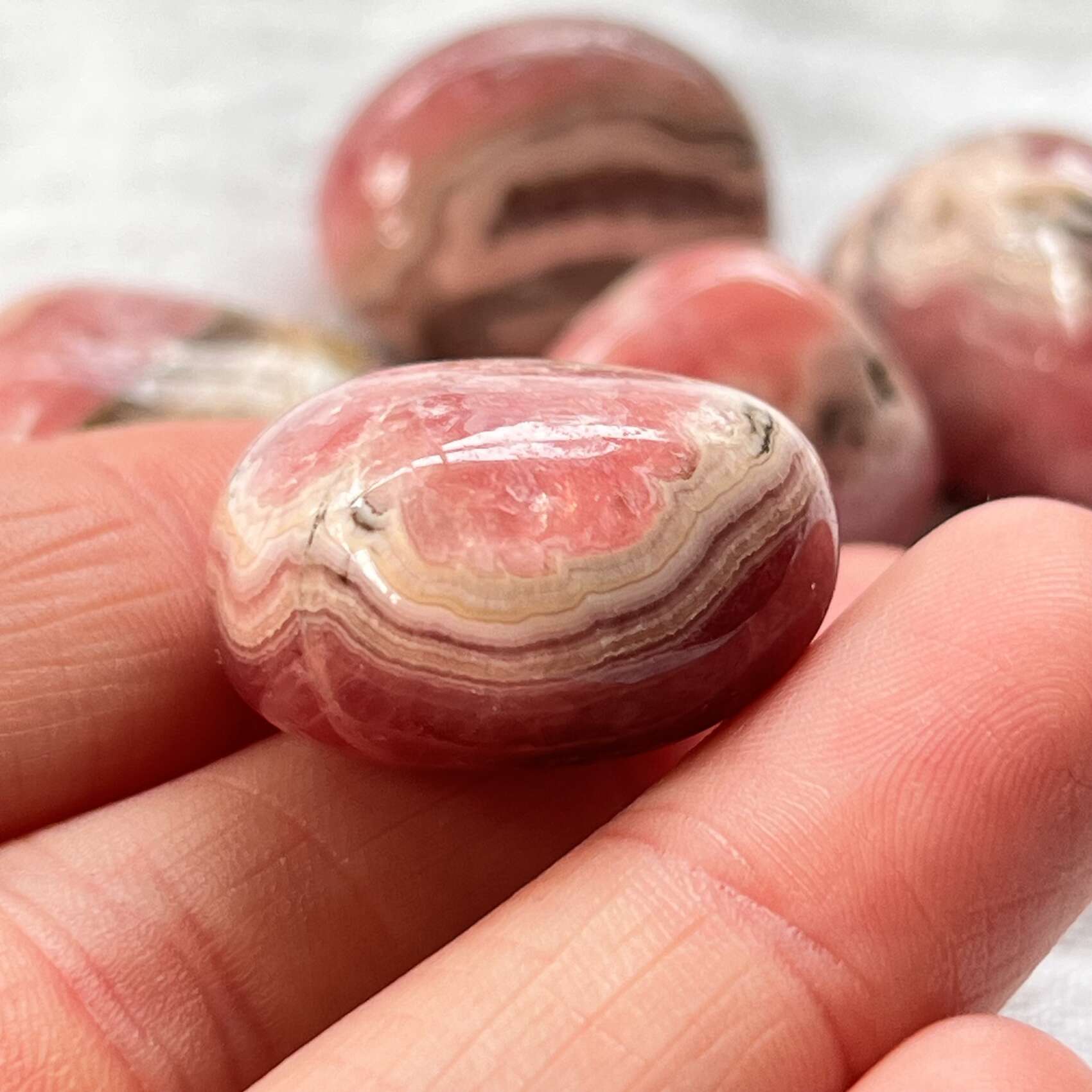 A pink and cream manganese carbonate, sometimes with grey; a part of the calcite group.