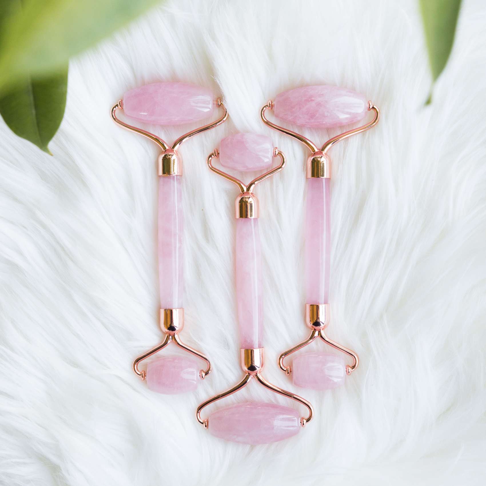 A good quality rose quartz massage roller, a versatile tool for the face and body.
