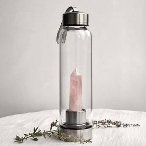 A rose quartz water bottle, with a good quality, beautiful crystal tower sitting within to infuse your drinking water with all the lovely rose quartz vibes.