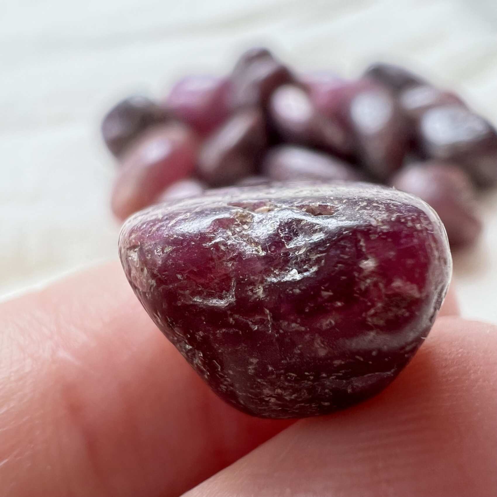Ruby has a strong protective energy, shielding us from others negativity, destructive thoughts and misery while encouraging us to discover our true life path, moral compass, happiness and spiritual wisdom. Supports decision making, mental acuity and the resolve to complete our intentions, developing awareness of the impact of thought upon the mind and body. Rubys gentle nurturing energy helps to resolve arguments and find the middle way in disputes. Protects from nightmares and stimulates lucid dreams and communication with spirit guides. A mineral of light overcoming darkness, ruby helps us to recognise and release our blocks to growth and so brings expansion, creativity and wealth.