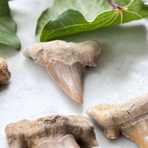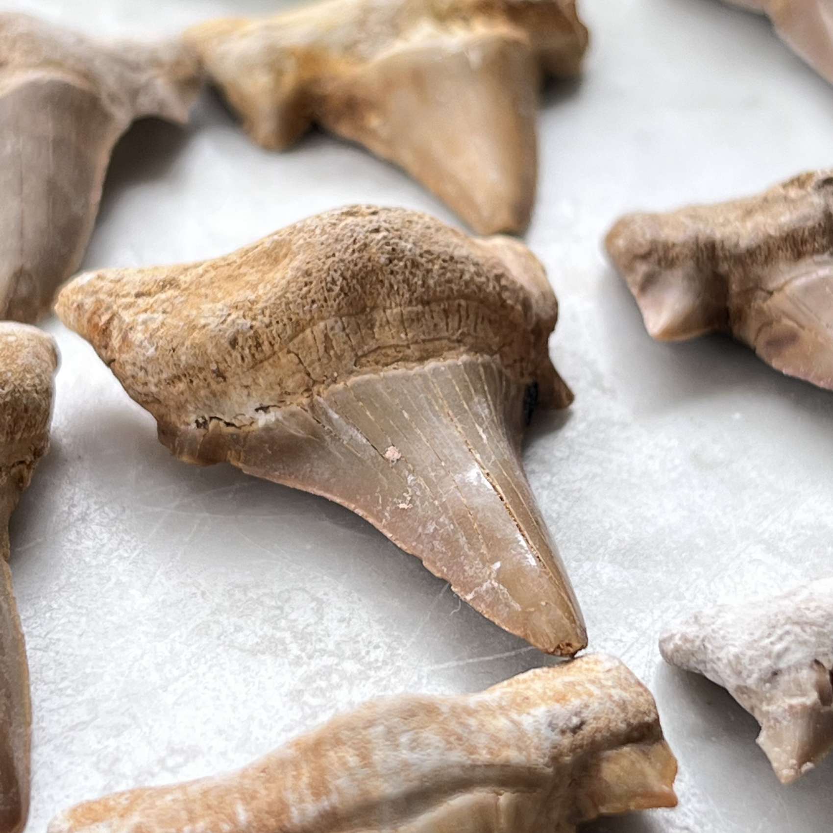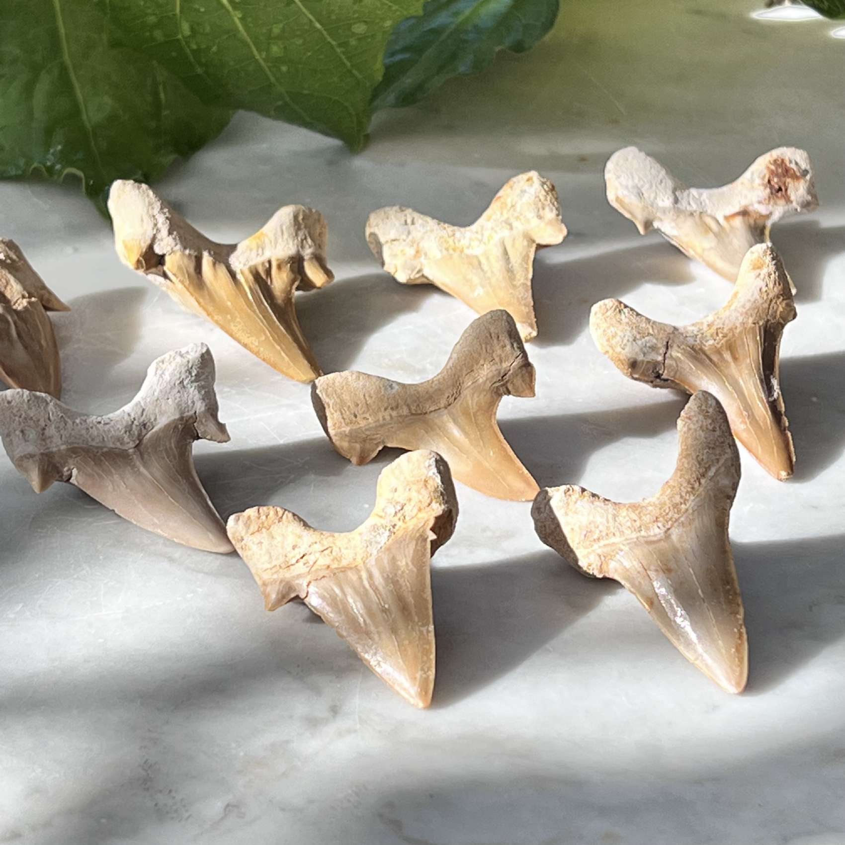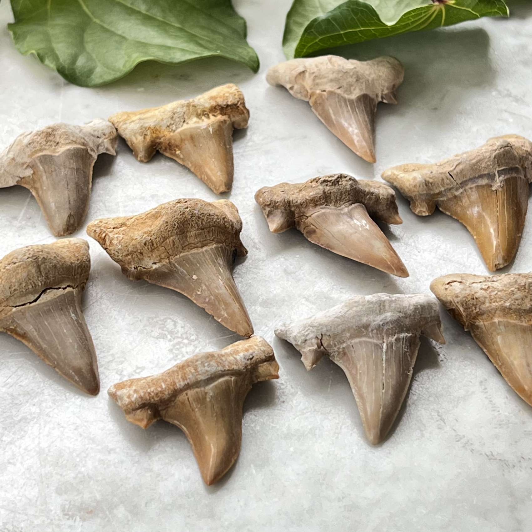 These particular fossils come from sharks once living in a sea where the Sahara Desert is now, although the species likely had a world wide distribution. It took at least 10,000 years for each shark tooth to fossilise, or turn to stone, in the sediments of this ancient ocean floor. This occurred before they were raised up by tectonic plate movement to their location of discovery in the Atlas Mountains and prior to development of the desert, now thought to be about 7 million years old.
