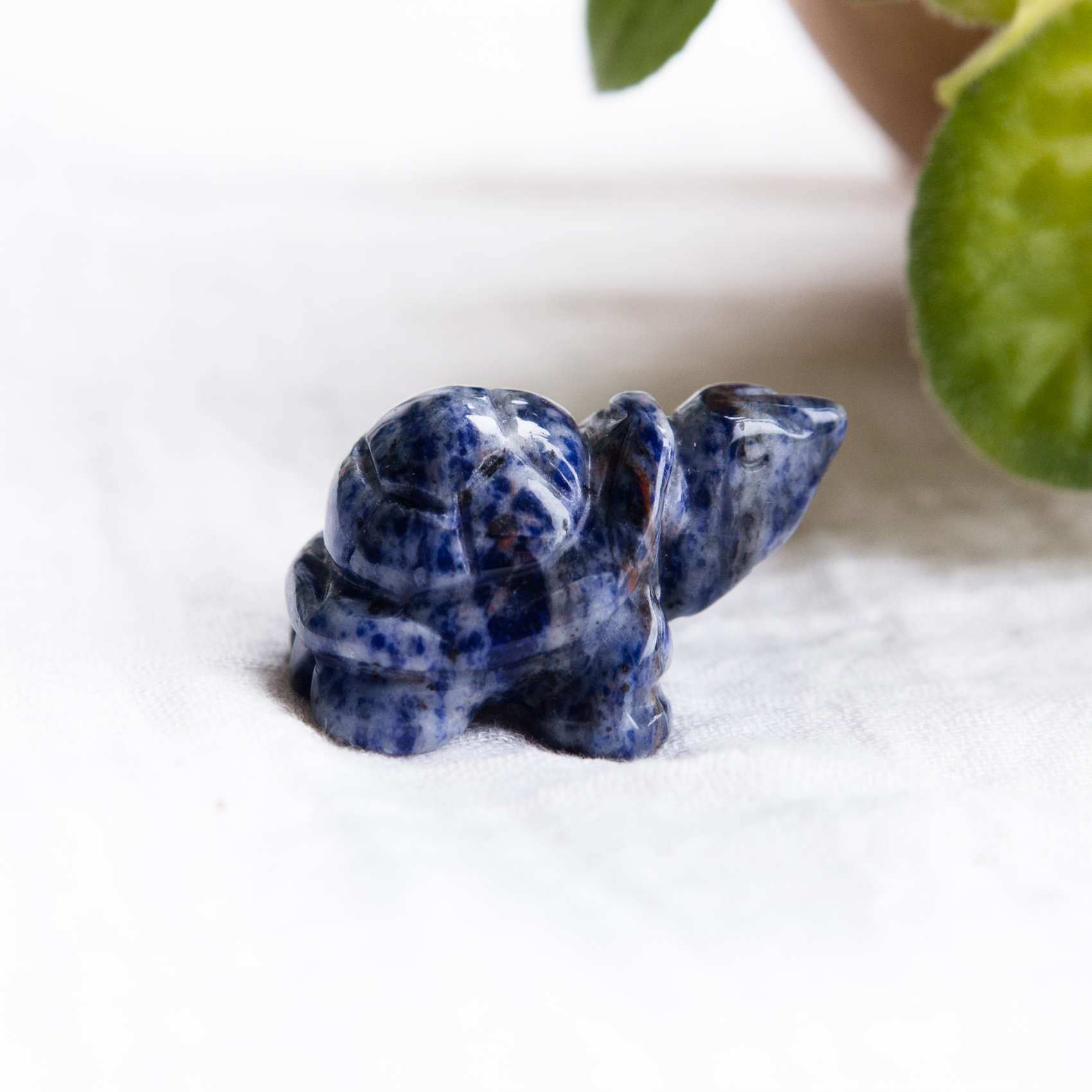 A true blue sodalite with speckles of white calcite make this turtle really unique.
